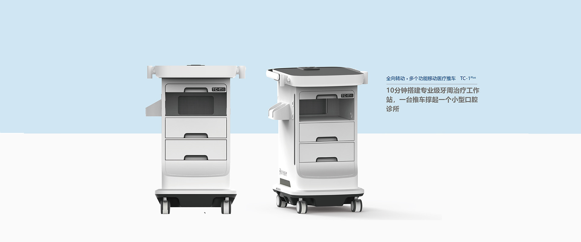 TC-1plus型多功能移動醫療推車在TC-1的基礎上擴大尺寸,增加固定萬向臂、全車防滲水導流槽和底部儲水盒功能